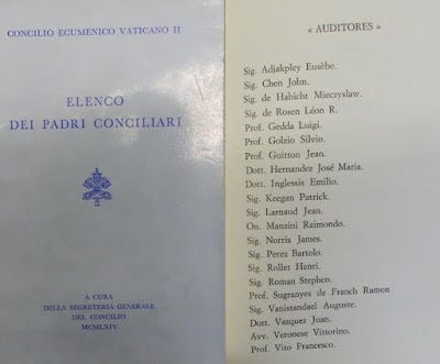 Contrast this with Vatican II, where 28 grassroots Catholic groups, movements and the like had representatives among the 50-odd lay auditors at the Council: